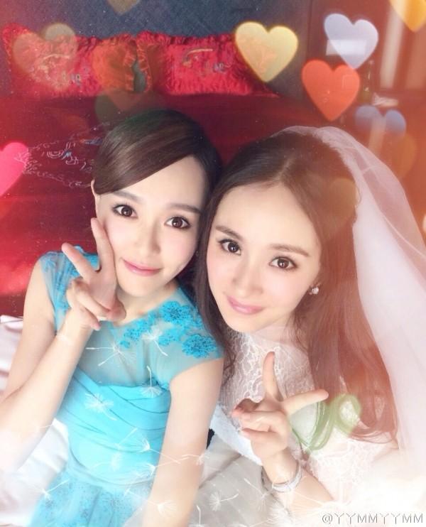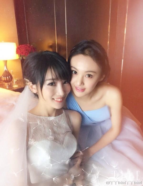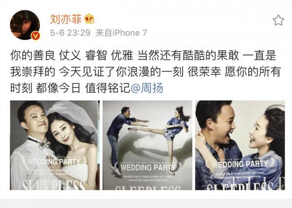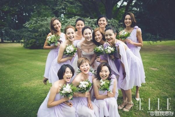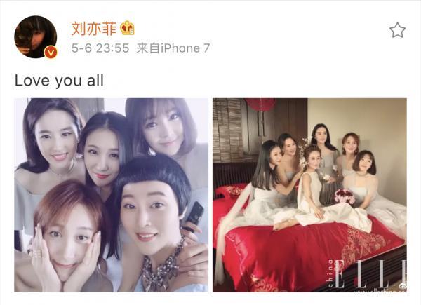 随后,刘亦菲也在自己的微博晒出了祝福。并po出了伴娘们的集体自拍。
