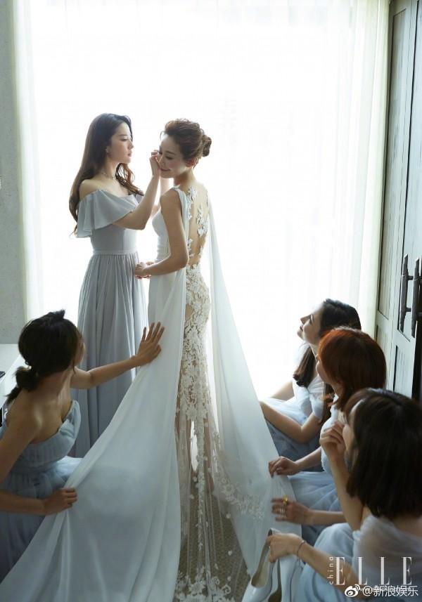 伴娘团五位成员分别是刘亦菲、王珞丹、谭维维、潘辰及时尚摄影师章元一,好久不见的潘辰也令人眼前一亮。