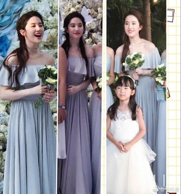 刘亦菲担任主伴娘的角色,在婚礼过程中一直在新娘身边陪伴,并为新人递上戒指。
